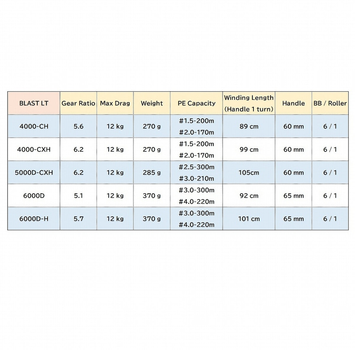 Gear : 6.2 Max Drag : 12kg BB : 6/1