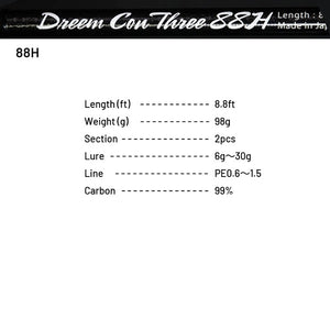 Section : 2 pc Length : 8.8ft Weight : 98g Lure : 6 - 30g Line : PE #0.6-#1.5