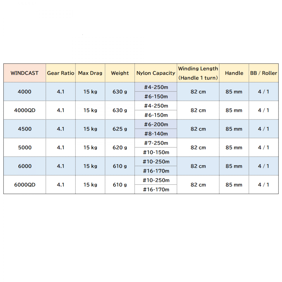 Gear : 4.1 Max Drag : 15.0kg BB : 4/1