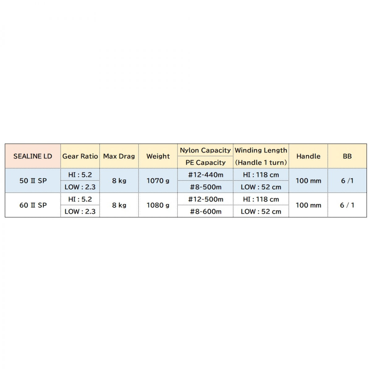 Gear : HI:5.2_LOW:2.3 Max Drag : 20.0kg BB : 6/-